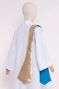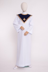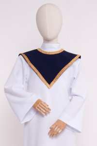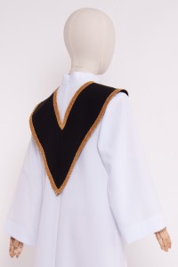 I colletti autonomi decoreranno maggiormente i camici per i cori delle chiese. Offriamo due tagli: a forma di triangolo e scialle. I colletti triangolari sono rifiniti con uno spesso nastro glitterato e sono disponibili in diversi colori. I colletti scialle sono cuciti su entrambi i lati in tessuto glitterato dorato e in gabardine che contrasta il colore. I colletti a forma di triangolo sono cuciti in due versioni: con o senza croce decorativa.