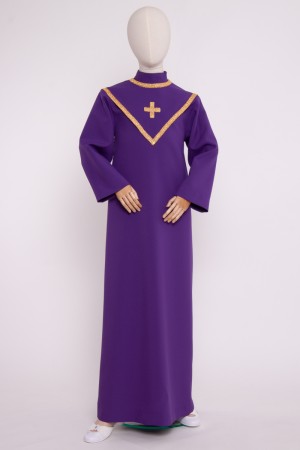 I membri di un gruppo musicale o di un coro della chiesa fondato nelle chiese parrocchiali sono interessati a un indumento che possa decorarli durante le belle cerimonie. I nostri prodotti sono stati creati pensando a tali esigenze. L'abito presentato è composto da due parti: un camice leggero e casual con maniche lunghe e un colletto accattivante. Il costume del coro è un camice viola e un colletto decorato con un nastro dorato e una croce. Il tessuto da cui è cucito questo set si distingue per la sua leggerezza, vaporosità e comfort dell'utilizzo.