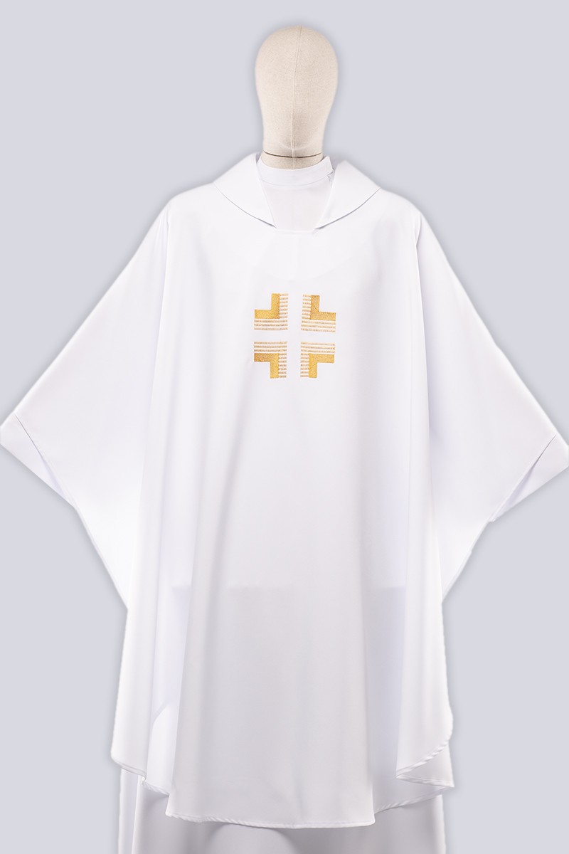 Casula sarà perfetto per il servizio sacerdotale durante il Natale e la Resurrezione. Nelle feste del Signore (es. Casula sarà perfetto per il servizio sacerdotale durante il Natale e la Resurrezione. Nelle feste del Signore (es. La Messa della Cena del Signore il Giovedì Santo), degli angeli, santi (non martiri), nei giorni festivi: di Ognissanti, Giovanni Battista, Giovanni Evangelista, Conversione di San Paolo e Cattedrale di San Pietro, nonché durante le messe rituali (se non hanno i loro colori). Viene utilizzato anche nelle messe funebri per bambini e adulti (secondo la volontà del defunto).