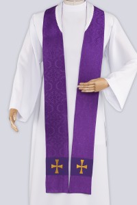 L'offerta di casule eccezionalmente belle e resistenti comprende le casule viola, che vengono utilizzate durante i periodi di penitenza e di attesa - Quaresima e Avvento, e durante i funerali. Decoriamo le vesti liturgiche che rappresentano il simbolo più riconoscibile dei sacerdoti, con una fascia con un motivo liturgico a forma di croce, pesce o il Segno Eucaristico dell'IHS. Le casule viola con ornamenti possono essere acquistate in set con stola.