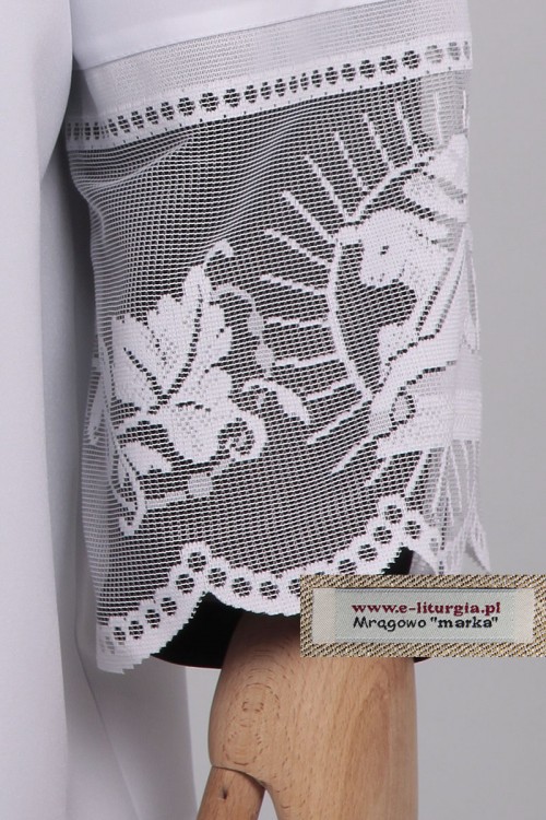 Elegante cotta commemorativa per sacerdoti. Il costume è decorato con un motivo liturgico traforato sulle maniche e sul fondo. I delicati ornamenti sul pizzo che orlano il fondo e le maniche hanno motivi della simbologia della chiesa cattolica romana. Camice tagliata e cucita in un classico taglio romano con pieghe stirate e scollo quadrato. È disponibile in un tessuto di poliestere cioè gabardine, in una miscela vaporosa di cotone e viscosa o lana-poliestere.